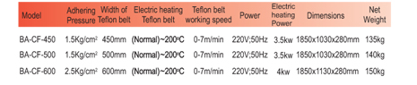 Conveyor belt yields high working efficiency. Even temperature in heated area, good effect in fusing. Auto stop with time delay is provided together with teflon device for protection of annual operation during a break power. Open type a wide range of use.